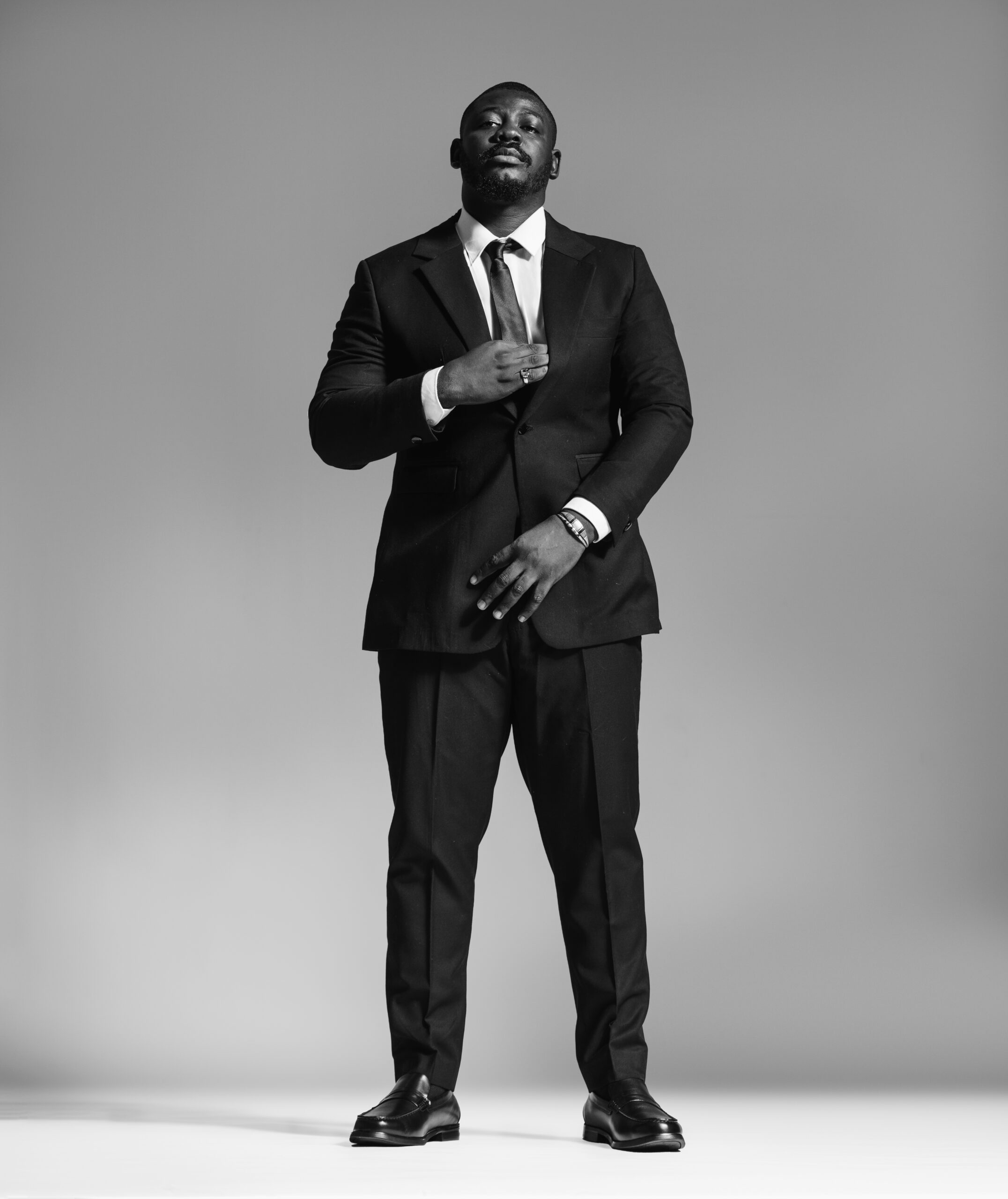 Adebayo draws inspiration from his immediate surroundings and legendary photographers. “I’m inspired by the environment around me and great photographers like Richard Avedon, Mario Testino, and Annie Leibovitz. Their work has shaped my process and continues to educate me. Black and white photography, in particular, is something I’ve been curious about—it captures tonality in a way that’s both simple and profound.”