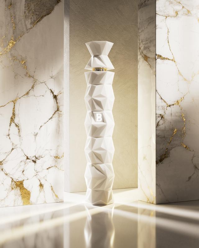 The bottle itself is a masterpiece of design, a modern icon of brutalist elegance that celebrates the liquid it holds. It stands at an extravagant ten levels tall, in tribute to the liquid’s meticulous 10-step creation process. The white hue reflects the spirit’s purity, while its chiselled facets give a diamond-like sparkle – a nod to the precious organic Diamond Rye used to make the spirit.